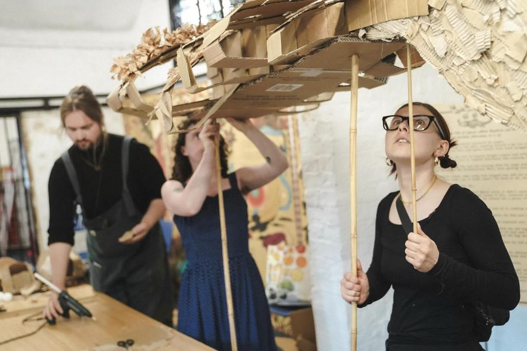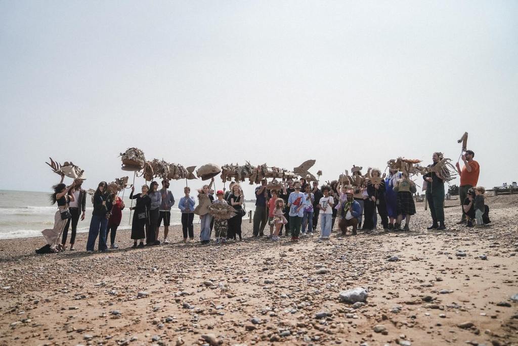 Working alongside a professional puppet maker, artists and guests we created our very own Pevensey fish puppets all made from upcycled materials. Once finished, we paraded them down to Pevensey Bay where we set the puppets down and took part in an Eden Project Communities Big Lunch picnic on the beach.